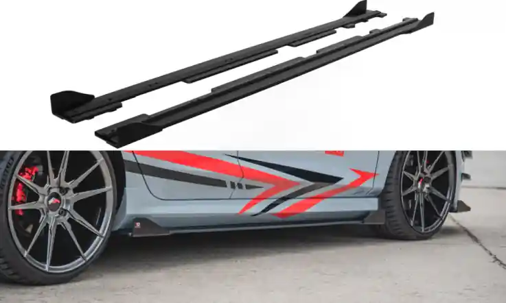 Prahové lišty Racing s křidélky Maxton Design pro Ford Fiesta ST Mk8 – lesklá černá