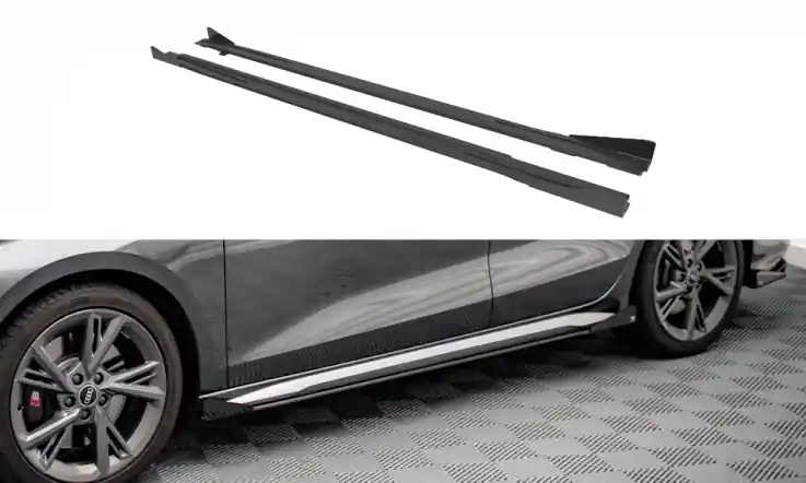 Prahové lišty s křidélky Street Pro od Maxton Design pro AUDI S3 8Y / A3 S-Line – červeno-černé