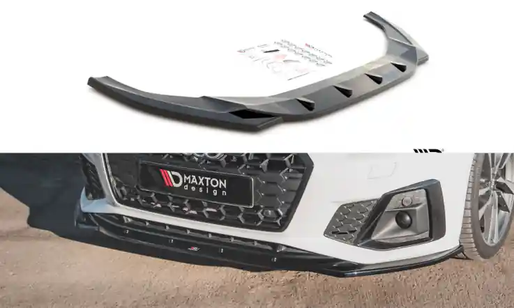 Spoiler předního nárazníku Maxton Design pro Audi S5/A5 S-Line B9 Facelift verze 1 – černý lesklý lak